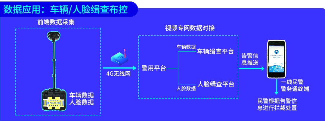 自動(dòng)抓拍視野范圍內(nèi)的人員和車(chē)輛,并生成結(jié)構(gòu)化數(shù)據(jù),同步將人員/車(chē)輛數(shù)據(jù)實(shí)時(shí)上傳至集指平臺(tái),集指平臺(tái)通過(guò)比對(duì)識(shí)別出黑名單人員/車(chē)輛后,生成告警信息通知執(zhí)勤交警進(jìn)行攔截查處,還可將黑名單下發(fā)到前端設(shè)備,在前端完成比對(duì)和告警。