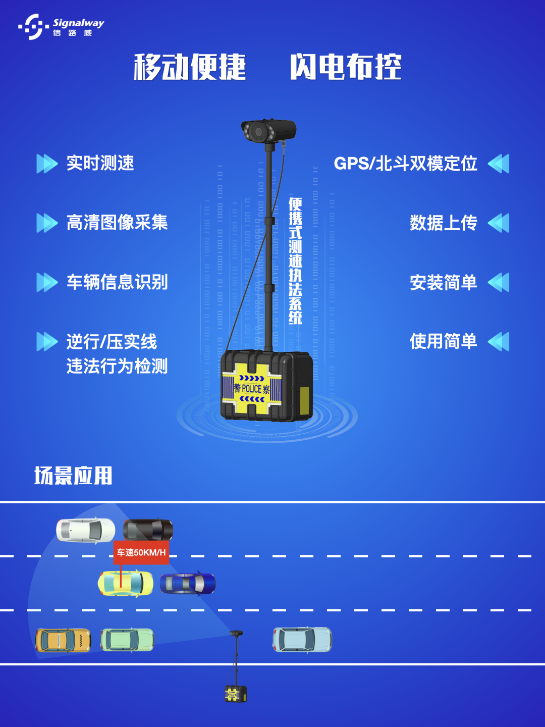 信路威固定式測速執(zhí)法系統(tǒng)主要由800萬像素高清鏡頭、3D多目標(biāo)雷達(dá)、高性能AI處理器芯片及紅外補(bǔ)光燈等模塊組成,可實(shí)現(xiàn)車輛實(shí)時(shí)測速、高清圖像采集、車輛信息識(shí)別、GPS/北斗雙模定位、數(shù)據(jù)上傳等功能,適用于超速違法抓拍、交通數(shù)據(jù)采集等領(lǐng)域,具有分辨率高、測速精度高、穩(wěn)定可靠、安裝簡單等特點(diǎn)。
