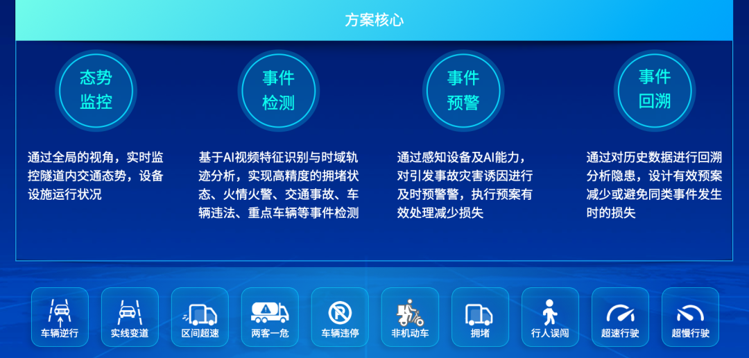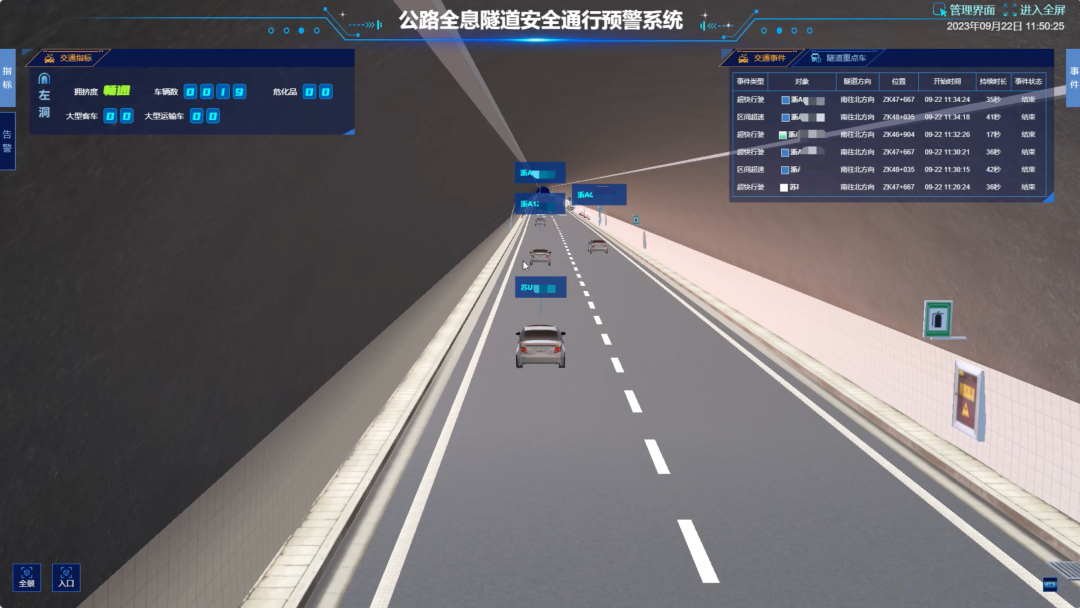 信路威公路全息隧道安全通行預(yù)警系統(tǒng),是一套將高精地圖和三維模型相結(jié)合的可視化應(yīng)用系統(tǒng),基于數(shù)字孿生技術(shù),將交通實(shí)景和事件信息在系統(tǒng)上進(jìn)行數(shù)字重構(gòu),提供與真實(shí)場(chǎng)景時(shí)空基準(zhǔn)一致的數(shù)字化映射。在隧道中,通過布設(shè)多個(gè)智慧基站,將分段、獨(dú)立的感知數(shù)據(jù)進(jìn)行關(guān)聯(lián)融合形成全域信息。同時(shí),將數(shù)據(jù)模型和智能算法相結(jié)合,依托全息感知網(wǎng),對(duì)全隧道交通數(shù)據(jù)進(jìn)行匯聚、交互、交換轉(zhuǎn)發(fā)等處理,實(shí)現(xiàn)事件識(shí)別、統(tǒng)計(jì)分析和處理加工,從而構(gòu)建隧道數(shù)字孿生底座。基于數(shù)字孿生底座可以建設(shè)多個(gè)數(shù)字化應(yīng)用場(chǎng)景,如:提供“兩客一危”等特種車輛全域跟蹤,實(shí)時(shí)孿生車輛的位置、速度等信息,并可以對(duì)隧道內(nèi)違規(guī)停車、變道、逆行、超速等多種交通事件信息的實(shí)時(shí)動(dòng)態(tài)孿生,實(shí)現(xiàn)對(duì)隧道的智能化、數(shù)字化管理。信路威公路全息隧道安全通行預(yù)警系統(tǒng),通過全息可視化的能力,讓隧道的監(jiān)控有空間感、更直觀,AI賦能推動(dòng)隧道安全管理更智慧!