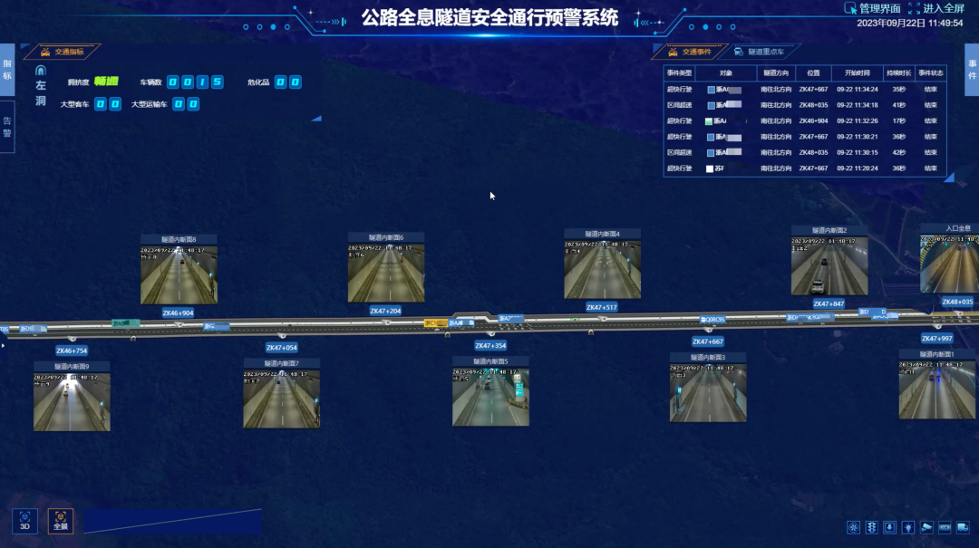 據(jù)統(tǒng)計(jì),目前新嶺隧道日均車流量近9萬輛次,節(jié)假日高峰流量峰值可達(dá)14萬輛次,隧道安全管控形勢(shì)十分嚴(yán)峻。為落實(shí)杭州亞運(yùn)會(huì)、亞殘運(yùn)會(huì)高速公路通行保暢任務(wù),浙江省交通集團(tuán)高速公路杭州南管理中心(簡(jiǎn)稱杭州南管理中心)聯(lián)合信路威緊扣省廳工作要求,開發(fā)建設(shè)了新嶺隧道數(shù)字孿生全息感知平臺(tái),為高速公路道路保暢提供AI數(shù)字化、智能化支持,保障新嶺隧道安全暢通,并于杭州亞運(yùn)會(huì)前正式上線使用,有效提升高速公路的運(yùn)營(yíng)管理、服務(wù)能力和智能化水平,為杭州亞運(yùn)會(huì)“保駕護(hù)航”。