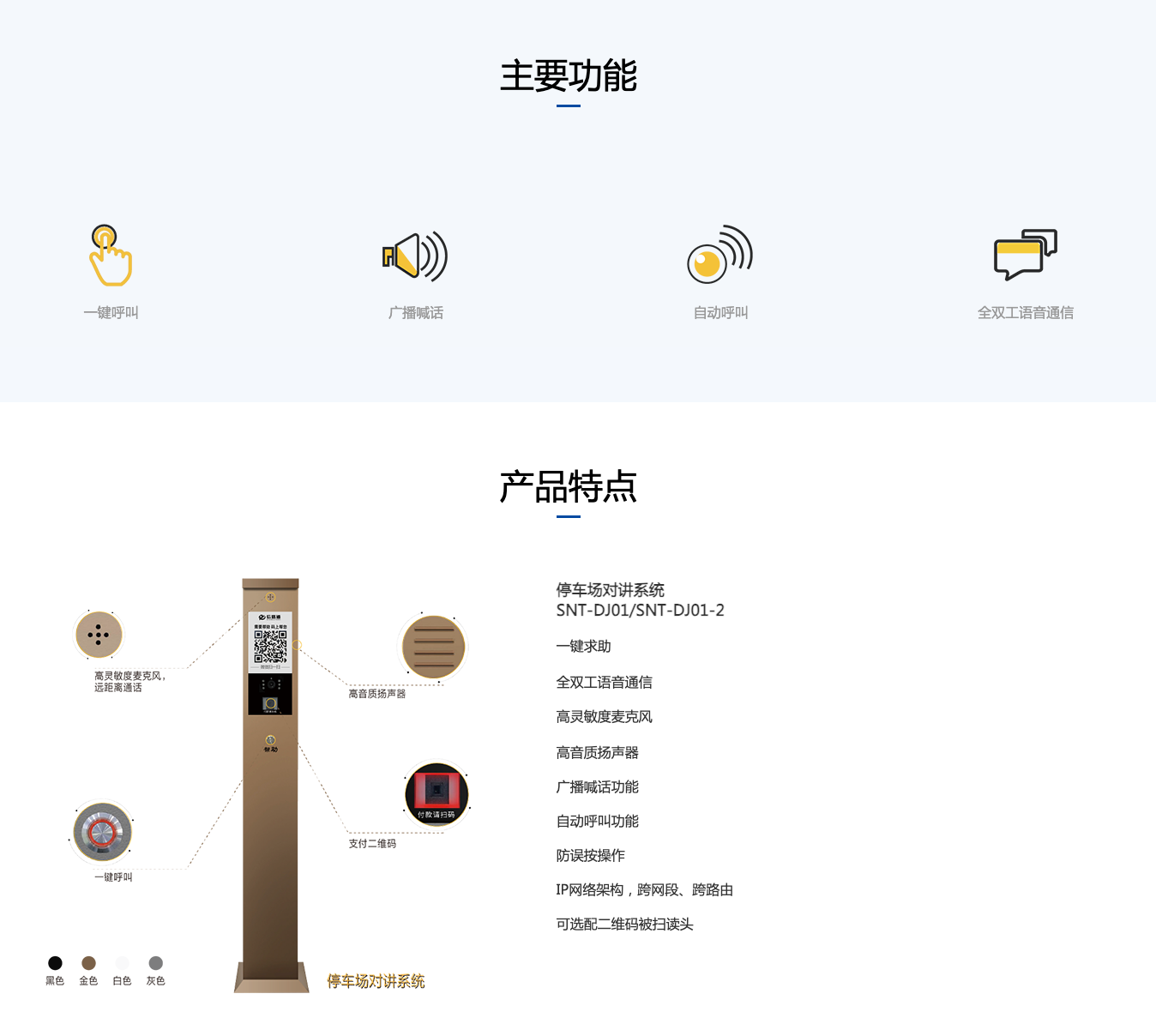 停車(chē)場(chǎng)對(duì)講系統(tǒng)是用于無(wú)人值守停車(chē)場(chǎng)等方案中的機(jī)器人呼叫系統(tǒng)。一鍵報(bào)警/求助、雙向?qū)χv、掃碼支付等具有多功能產(chǎn)品。